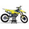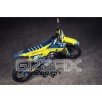 Dekorkit von Grafixdesign bestehend aus: Kühlerspoiler, Kotflügel vorne und hinten, Gabelschutz und Schwingen. Nummernfolien bestehend aus: Startnummerntafel vorne, Seitenverkleidung links und rechts. Startnummerfolien sind im Grundset nicht enthalten. Aufgrund der verschiedenen Möglichkeiten extra anklicken.